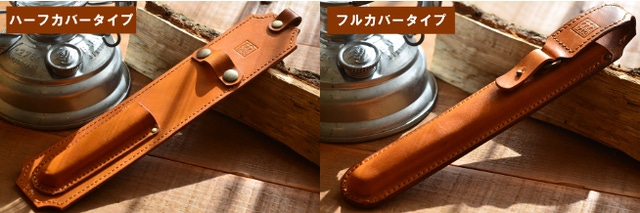 こだわりキャンパーの所有欲を掻き立て、ハンガーラックに収納ができるレザーケースを2種類(ハーフタイプとフルカバータイプ)ご用意しました。