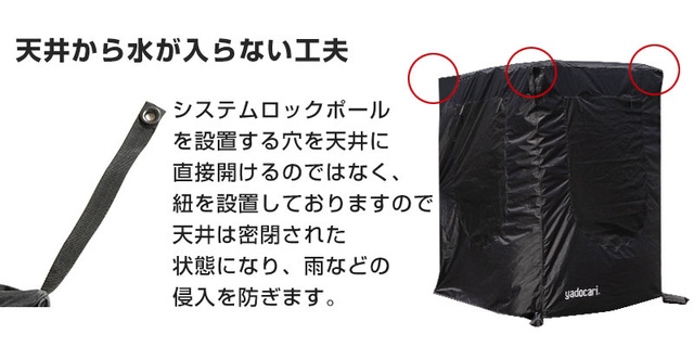 - システムロックポールを使えば自立可能!タープにも変身!アスファルトでも設置可能。