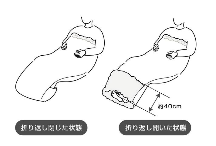 40cmの深い足元折り返しにより、足の冷えを防ぎつつ、包まれる感触は損なわれません。限られた空間の車中泊時は動く動作を極力小さくする事でスムーズに動作することが出来ます。ちょっとした移動などをサクッと便利に出来る機構となっております。