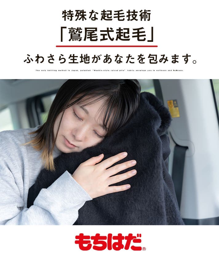 1970年に誕生した製法「鷲尾式起毛」× B式織機による円筒起毛。繊維のループ形状を壊さず、均一に起毛させることで、他にはない圧倒的なボリューム感と、驚くほど柔らかな肌触りを実現しました。それはまるで、マシュマロや毛布に全身をやさしく包まれているような感覚。冷えやすい車内でも、心まで落ち着く「安心感」を与えてくれます。