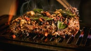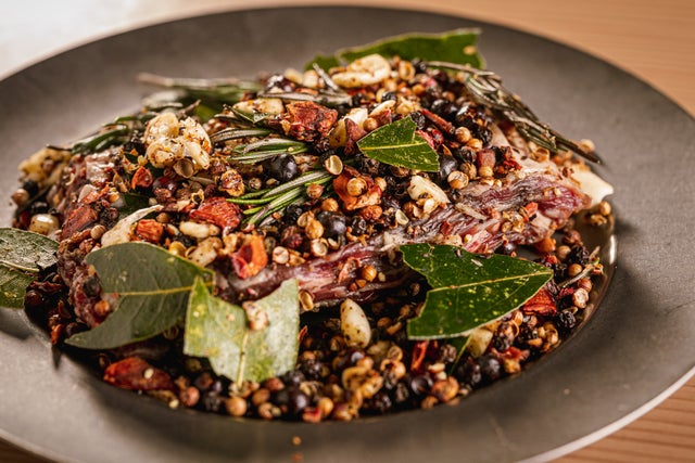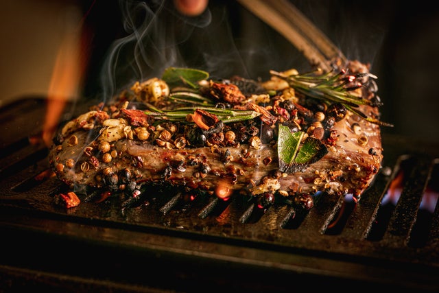 柔らかく濃厚な味わいが特徴の脂身が少なくあっさりしたハラミを、複数ものスパイスに一晩漬けこみ塊のまま豪快に焼き上げます。