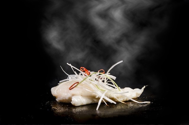 ふぐ刺しは高たんぱくで脂肪分はほとんどなくヘルシーではありますが、鉄板で焼く事によって刺身では味わえない「旨味」を引き出します。