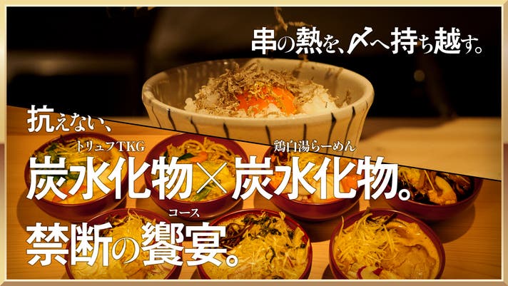 『焼鶏S』Makuake限定【トリュフTKGと鶏白湯らーめんで締める背徳コース】お食事ペア権。