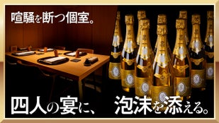 4名でしっとりと楽しめる個室確約にはボトルシャンパン1本。