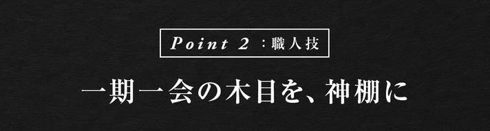 その希少な材を用い、古典木工の職人が一つひとつ丁寧に仕立てる神棚。