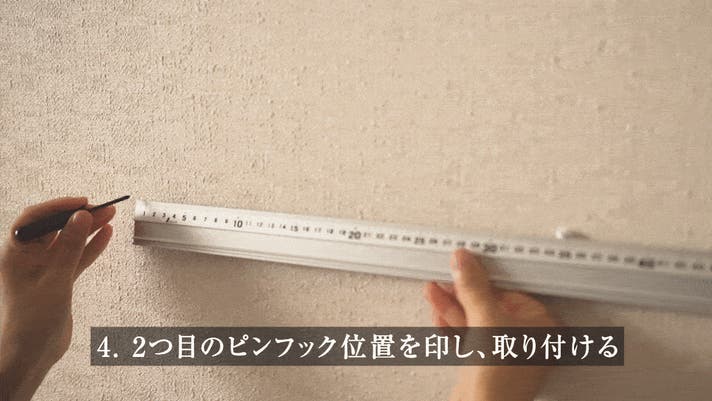 4. 2つ目のピンフック位置を印し、取り付ける
