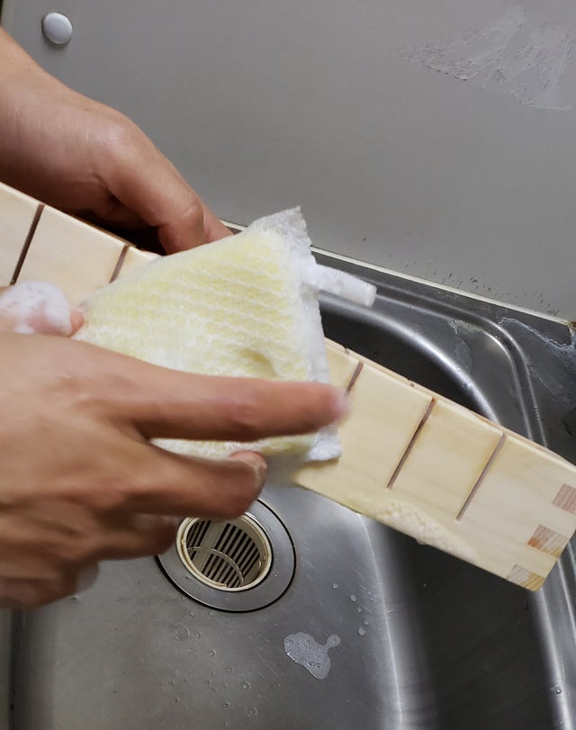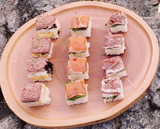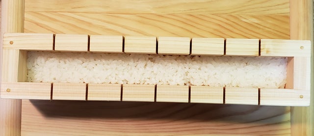 ※押し固めるので板にご飯がくっつく場合があります。作成時に板にみずをつける、ラップをまくなどしますとはがれやすくなります。