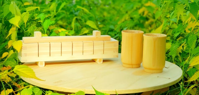 - ひのきのグラスで酒も豪華に お手入れがしやすい仕様になっております