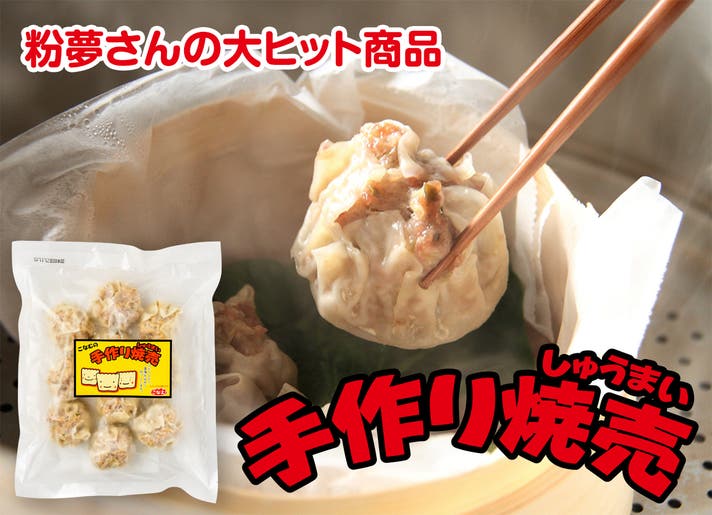 びはんコーポレーションでは、”粉もの”に向き合い40年の岩手の誇る焼売職人「粉夢(こなむ)」さんとのコラボによる渾身の逸品山田の醤油焼売をつくりました。