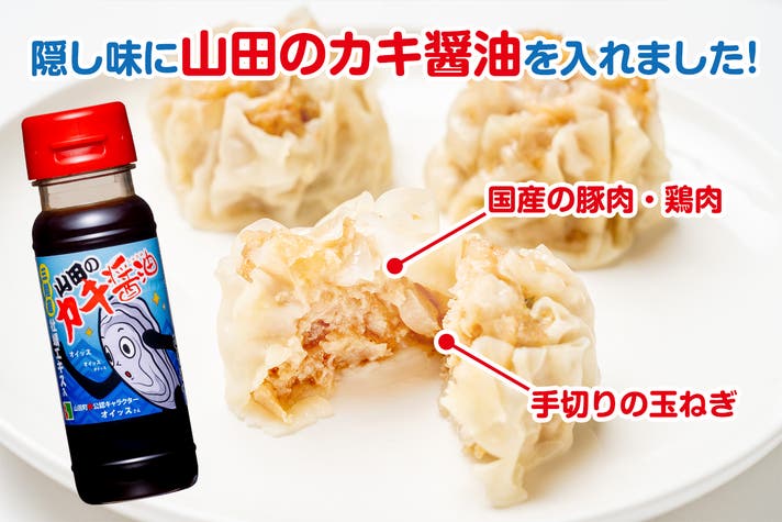 岩手町のボリューム満点のこなむの手作り焼売をベースに山田町の山田の醤油で絶妙な味付け。隠し味には山田のカキ醤油を加えて三陸産牡蠣の旨みをしのばせました。