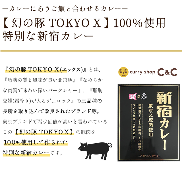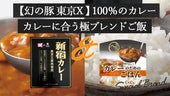 「幻の豚肉 TOKYO X(トウキョウ エックス)」を使用したプレミアムな新宿カレーと、それに合うように専用にブレンドしたパックご飯のセットです。
