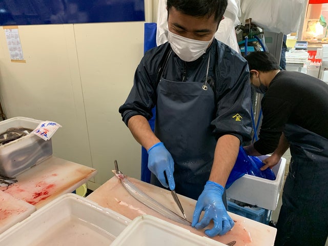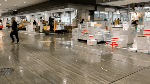 朝3時、まだ外は真っ暗。豊洲市場に集合した私たちは特別な許可を得て、場内に入る。