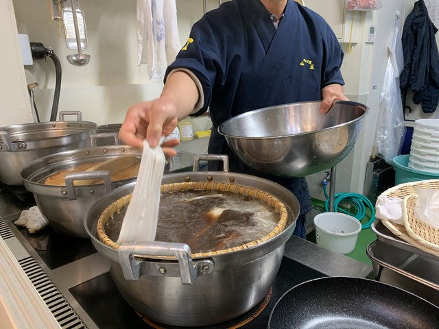 「朝、豊洲で仕入れた生きた新鮮な穴子をすぐに捌いて、すぐに煮ていますからね。」