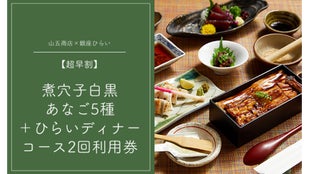 1.Makuake限定【超早割】煮穴子 白黒・あなご5種・ひらいディナーコース2回利用券