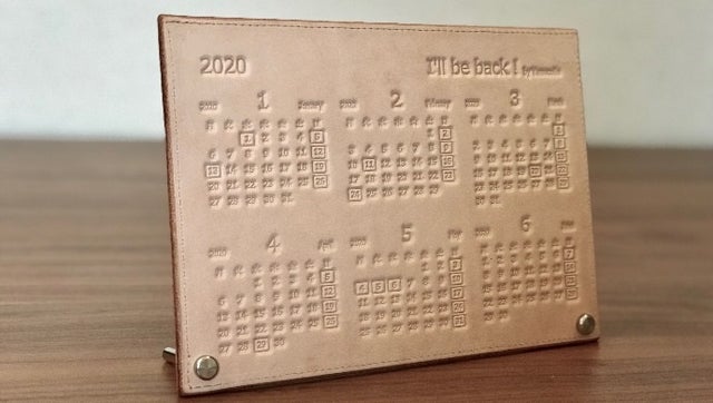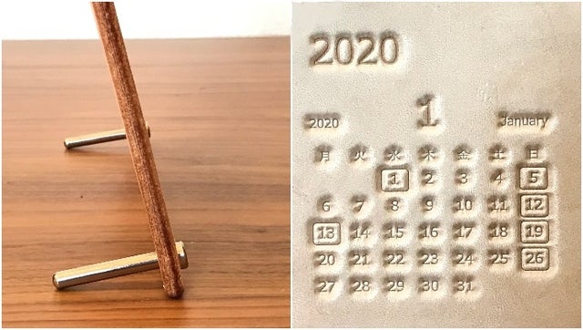 - ヌメ革型押しの両面貼り合せの7mm厚さ、 存在感抜群の【極厚革】2020卓上カレンダー