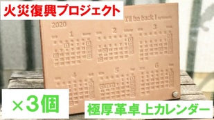 火災復興支援 極厚革2020卓上カレンダー3個