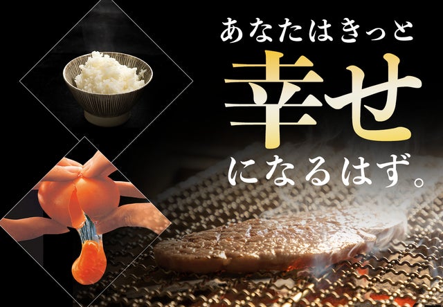 ・A5ランクミスジ、ご飯(おかわり自由)、日本一こだわり卵、味噌汁、かけるハンバーグ、季節の焼き野菜3種