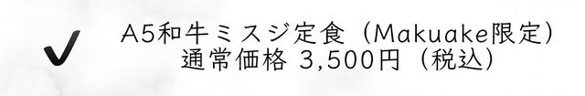 オープン記念A5和牛ミスジ定食1名様分+Makuake限定会員権