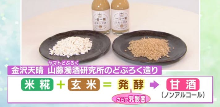 原料の玄米甘酒には140ml当たり1000億個の乳酸菌が入っている。