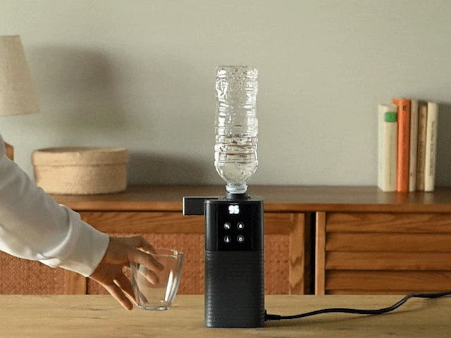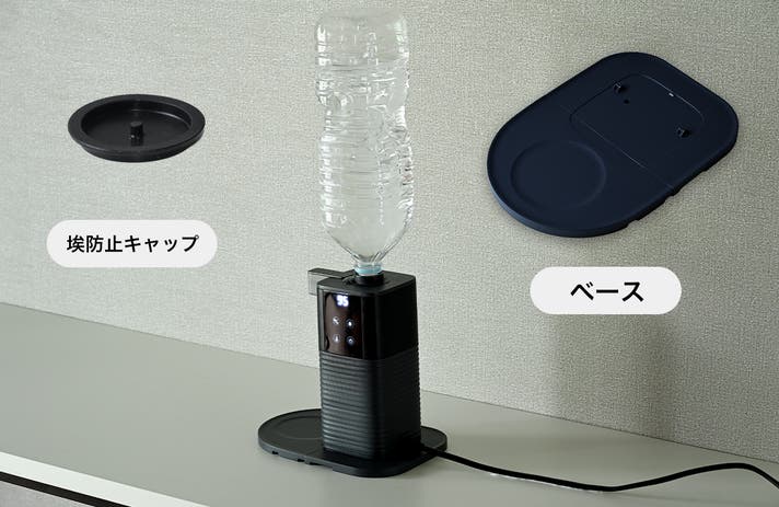 ペットボトルに専用のキャップを付けて次世代電気ポットにセット。