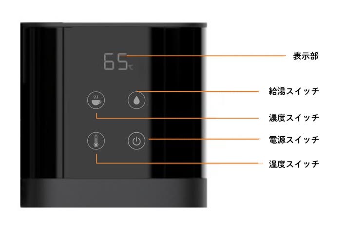 温度設定は常温から、50℃~95℃まで。5℃刻みでお好みの温度に設定できます。メモリー機能付きで、同じ温度なら1タッチで操作できます。