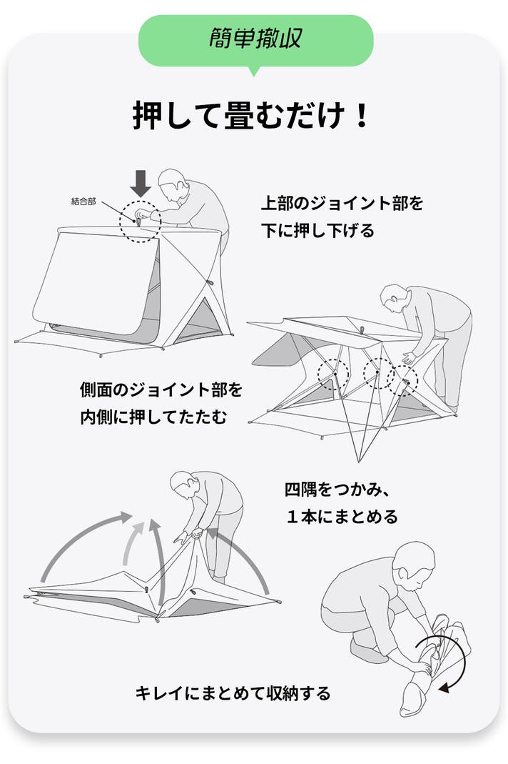 撤収もたった10秒、押して畳むだけ!