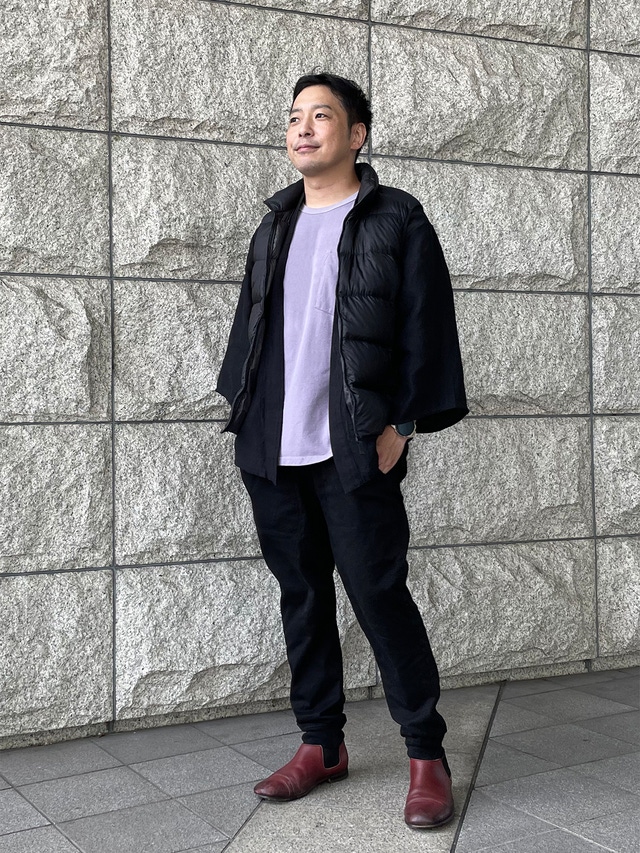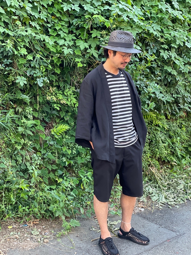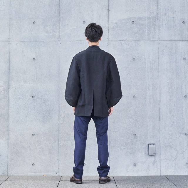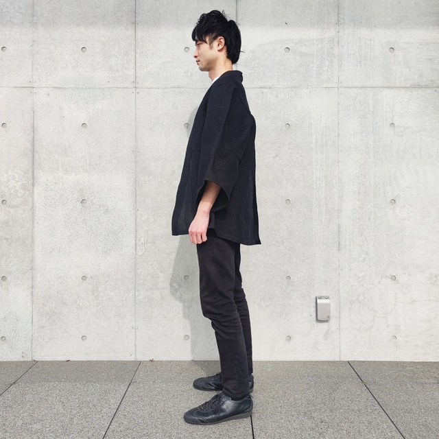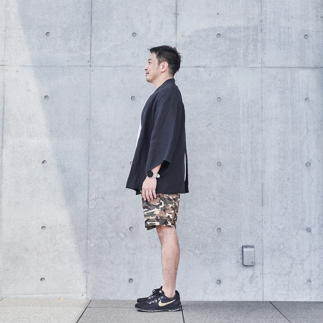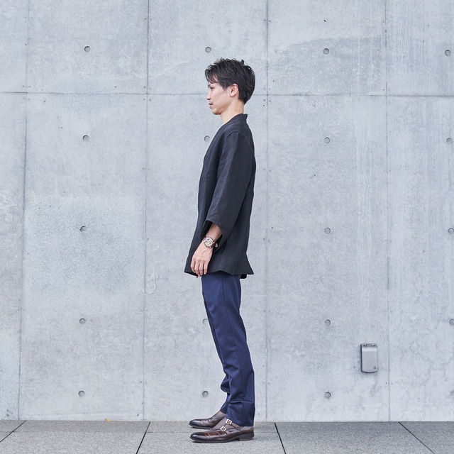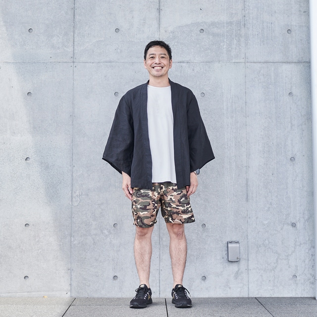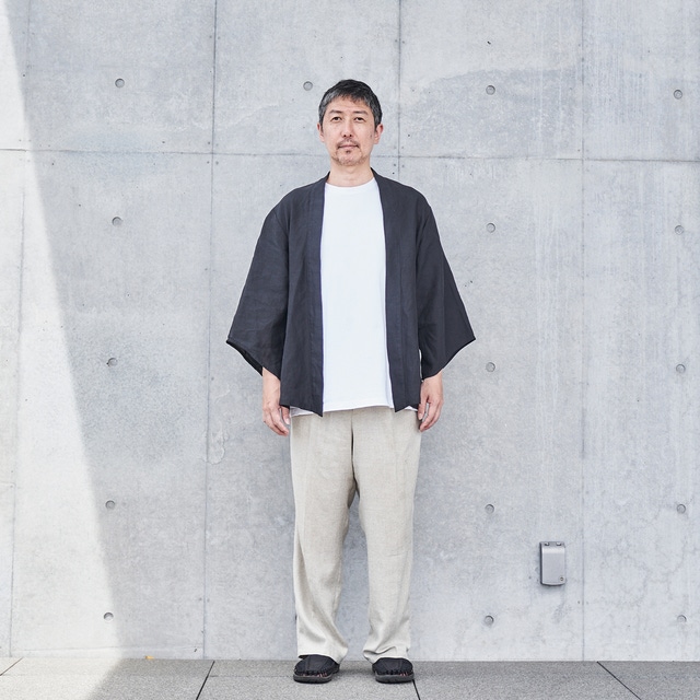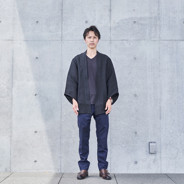 通常の羽織は大きく袖口が開いているのが特徴ですが、それをギリギリまでスリムにし、“旅館感”をなくしました。