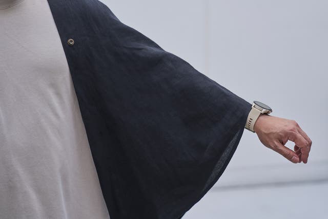 着用時に手が隠れないよう絶妙な袖丈感に仕上げました。腕時計の確認も簡単にできます。※個人差があります。