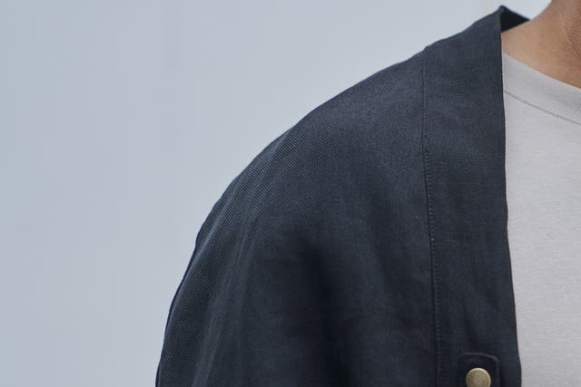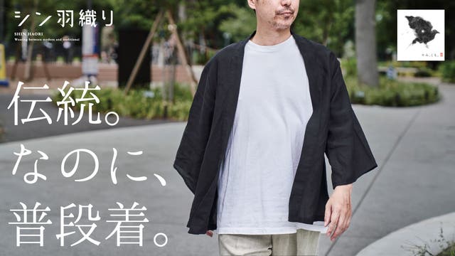 複雑になるのでこのページを編集するまで設定に否定的でしたが、この「肩掛け羽織」の元となった第一弾のプロジェクト「シン羽織」もとっても雰囲気のある製品で「肩掛け羽織」とシーンを分けて併用しても素敵かなと思って、急遽セットでのリターンを用意することに決めました。例えばカップルや夫婦で男性は「シン羽織」女性は「肩掛け羽織」のように合わせてもとってもよいと思います。(※「シン羽織」は女性の着用には向いていません。)こちらも「肩掛け羽織」と同じサイズ感に設定しているので、それを目安にお求めいただければと思います。詳細は以前のプロジェクトページをこちらから確認してください。生地は今回の「肩掛け羽織」と同じなので扱いは同様です。