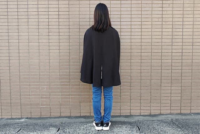 あえて着用時の美しさを重視したので、留め帯の位置を首元付近ではなく胸元にしております。その結果、腕の可動域が狭まり例えば券売機なんかを使うときなんかは少し手間がかかります。