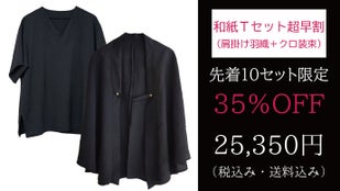 【和紙Tセット超早割:肩掛け羽織 × 1点 クロ装束×1】10セット限定