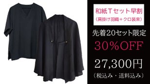 【和紙Tセット早割:肩掛け羽織 × 1点 クロ装束×1】20セット限定