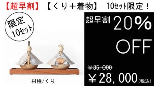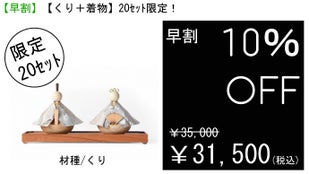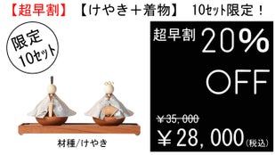 今回は定番の「すべて日本産の木を使用した、木の質感が生きるひな人形」に京都の生地を使った着物セットをご用意しました。