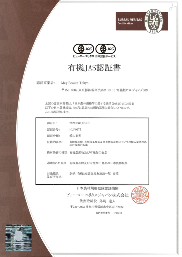 オーストラリア認証オーガニック商品であるのはもちろんのこと、日本においても有機JAS認証を取得しています。