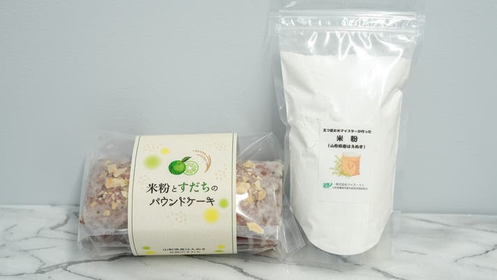 4.【通常リターン】はえぬき米粉500g、米粉とすだちのパウンドケーキ 1本