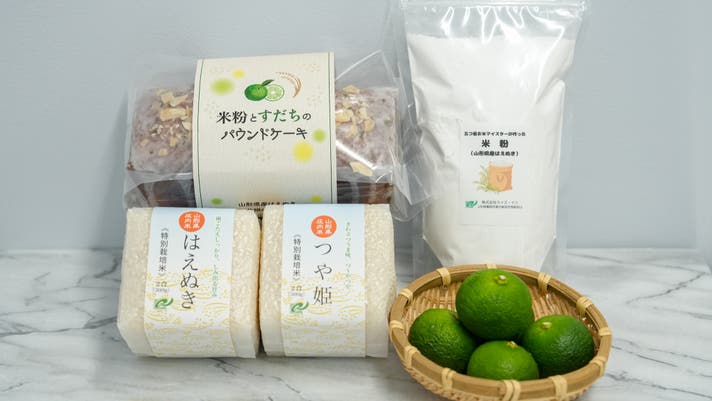 【早期リターン限定】やまがたセット(米2合2種類、米粉、すだち、パウンドケーキ)