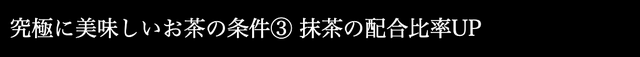 抹茶の配合比率を限界まで高めることで、緑茶だけでは作り出すことの出来ない深みとコクを作り出すことができています。