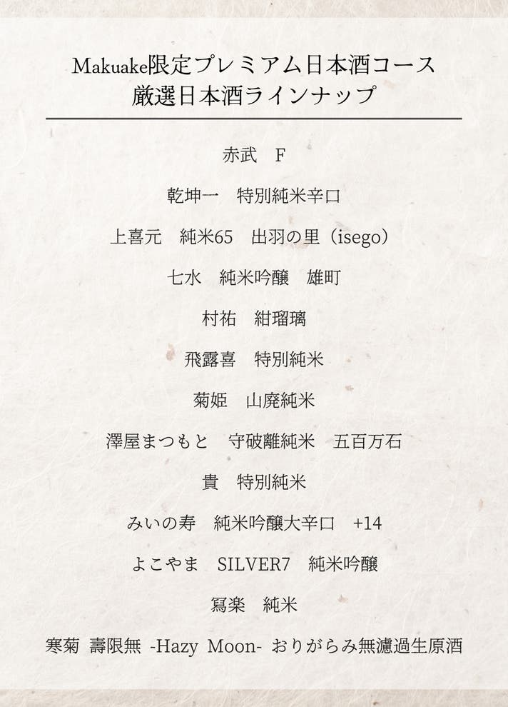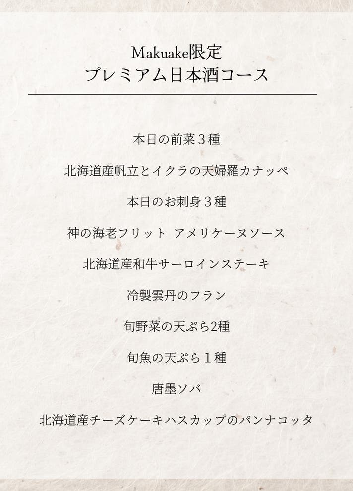 Makuake限定プレミアム日本酒コース 1名様分+会員特典