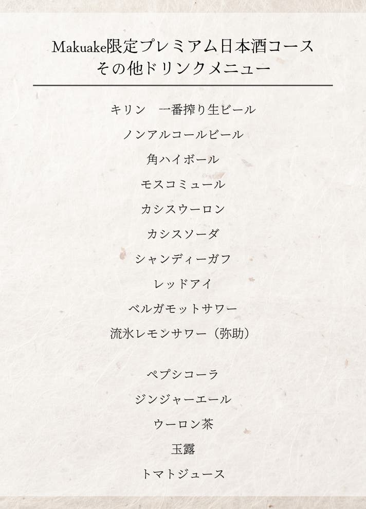 ▼Makuake限定プレミアム日本酒コースに含まれるドリンク例