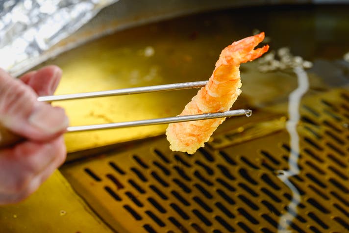 小さな店だからこそ実現できる、職人が目の前で揚げる“揚げたて”の臨場感。