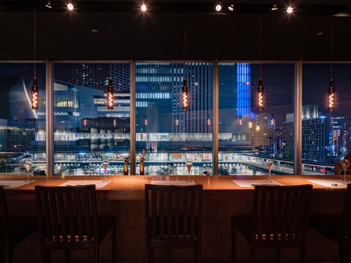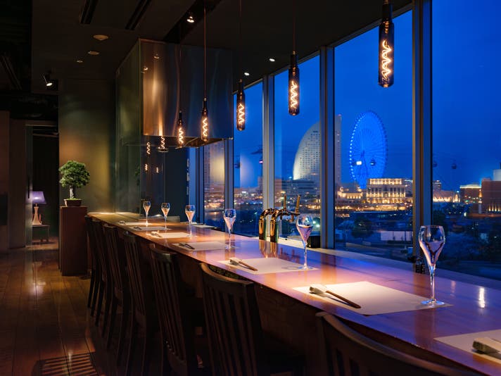 なかでも象徴的なのが、みなとみらいのシンボルとも言える観覧車をのぞむカウンター席。