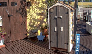 お洒落な塗り壁仕上げのエンゼルガーデンシェッド「天使の小箱」