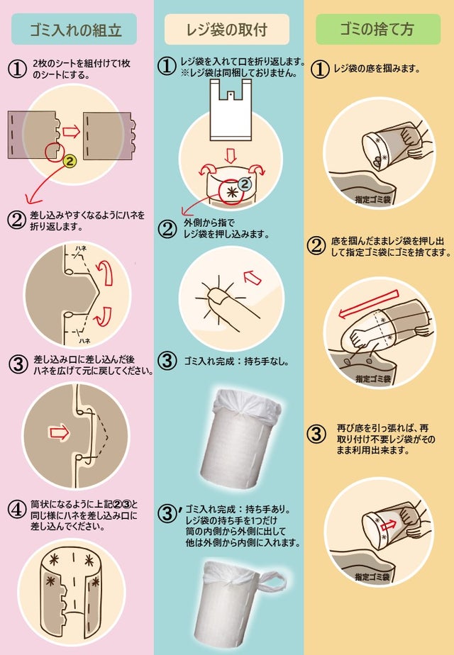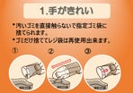 - 「手がきれい」・汚いゴミを直接触らないで捨てられます。 ・ゴミだけ捨ててレジ袋は再使用します。