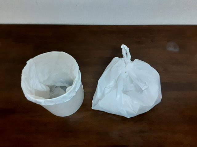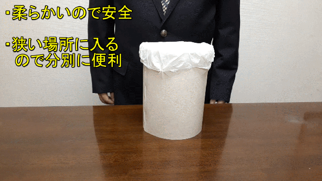 ゴミ箱があると便利だけど、ゴミ箱は大きいのでキャンプ場、避難先には持っていけないね。