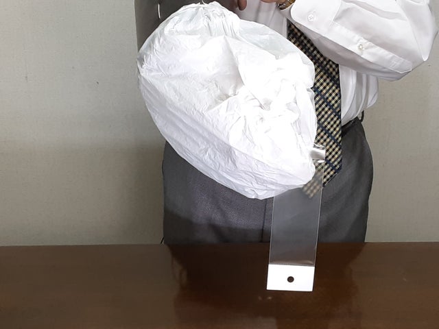 レジ袋の固定方法を変えるだけで、持ち手を出せます