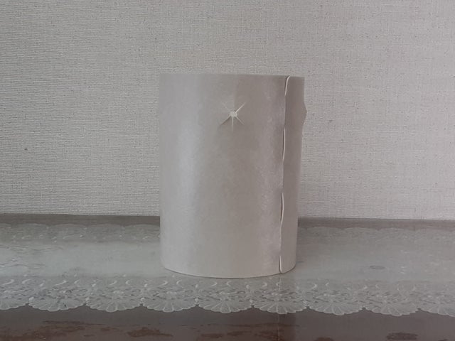 べた付く面を内側にして丸めると。