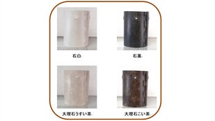 ・完成した製品×4点を各種類20セット [一般販売予定価格1点 1,750円のマクアケ応援価格18%OFF] ※柄は石白、石黒、大理石うすい茶、大理石こい茶の4種類を1セットとして20セットになります。(柄は選べません)