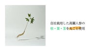 丸ごとへのこだわり: 根・茎・葉の異なる力を使うために、高麗人参を余すことなくふんだんに使用しています。