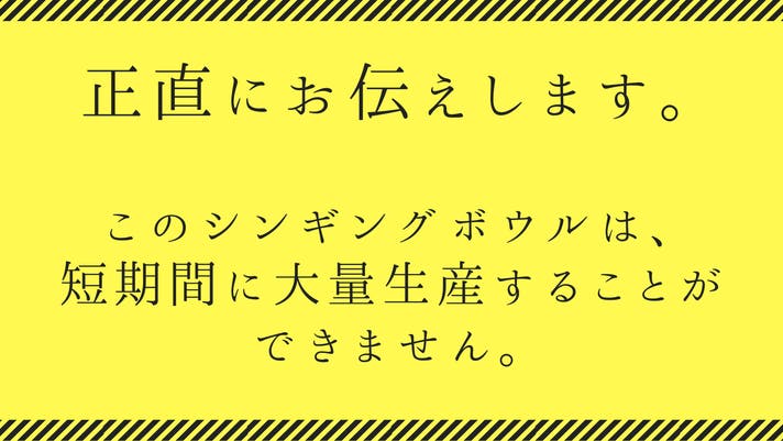 ※製品は、生産状況・天候・配送問題などで、輸送が遅延する可能性がございますので、ご留意ください。 ※応援購入の数が想定を上回った場合、製造工程上の都合等により出荷時期が遅れる場合がございます。 ※ユーザーの使用未熟による払い戻しは受けておりません。 ※使用感などに関しては、感じ方に個人差が予想される製品でございます。そのため、使用感等に関する返品・返金はお受けいたしかねます。YECHEN音浴シンギングボウルは、一つひとつ職人が作っているため、形・色・模様・柄・音の響きにも個体差があります。動画や写真とお届けする商品と若干異なる場合がありますのでご理解ください。 ※開発中の製品につきましては、デザイン・仕様が一部変更になる可能性もございます。 ※本プロジェクトを通して想定を上回る皆様から応援購入を頂き、現在進めている環境から量産体制を更に整えることができた場合、正規販売価格が販売予定価格より下がる可能性もございます。 ※リターンの配送が完了するまでJapan Top Trade社はYECHAN社の日本における独占販売権を有する正規代理店です。並行輸入品が発生する可能性がございますが、並行輸入品には正規代理店による製品サポートを受けることができません。また、正規代理店を通じて購入することで、日本国内での流通に必要な各種認証の取得や、関税の適切な処理が担保されます。 ※本文中に記載させていただいたスケジュールは、あくまでプロジェクト公開時点の予定です。応援購入の性質上、配送遅延のおそれがございます。 原則として、配送遅延に伴う応援購入のキャンセルはできませんが、リターン配送予定月から3ヶ月を超えた場合には、希望者に限りキャンセルにて対応させていただきます。 ※商品等の不具合による返品・交換 ◾️対応条件: 商品の初期不良、またはお届けした商品がご注文内容と異なる場合には、商品到着後7日以内に、プロジェクトページの「実行者にメッセージ」よりご連絡ください。 状況を確認のうえ、原則として良品との交換対応を行います。 なお、交換対応が困難な場合に限り、返金対応を含めた誠実な対応をさせていただきます。 ◾️返金額: リターン金額(税込)の全額 ◾️返品送料/再送料: 実行者負担 【返品・交換をお受けできない商品】 ・サポーターの責任により破損、汚損が生じた商品 ・使用された商品 ・事前にご連絡をいただいていない商品 【交換をお受けできないケース】 ・商品到着後、8日以上経過した商品 応援購入サービスの性質上、以上の注意点につきましてあらかじめご理解とご了承いただいた上で応援購入くださいますよう、よろしくお願い申し上げます。 ーーーーーーーーーーーーーーーーーーー プロジェクトに関する情報 ・プロジェクトの属性:輸入商品 ・代理店によるサポート:日本語カスタマー対応等 ・プロジェクト実行者(国):日本 ・製品者(国):韓国 ・製造者(国):ネパール ーーーーーーーーーーーーーーーーーーー