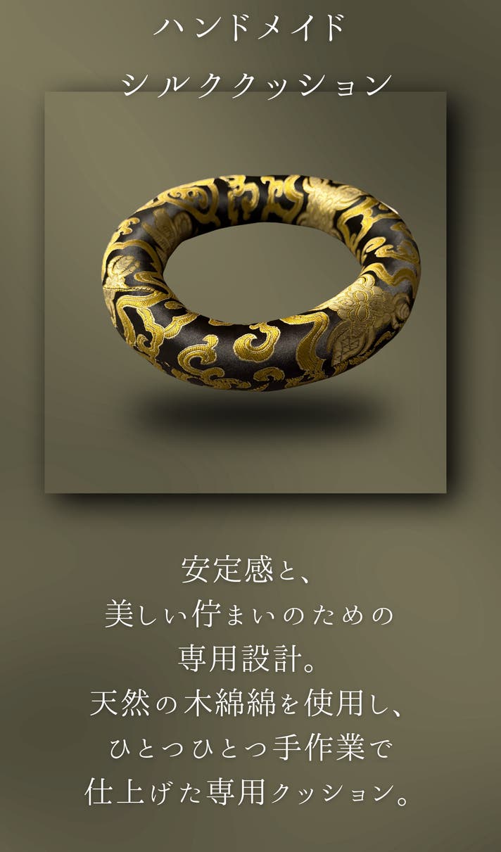 ・ハンドメイドシルククッション × 3(S、M、Lサイズ用1つずつ)